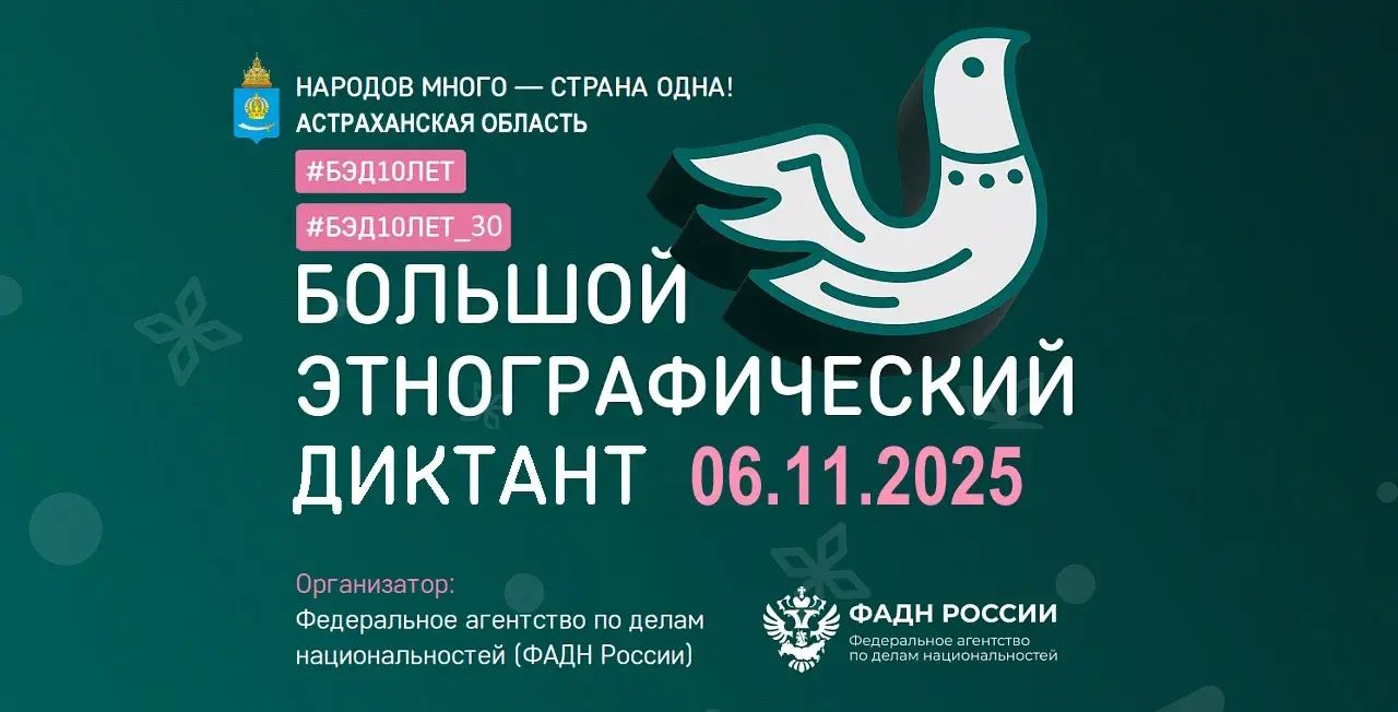 6 ноября - единый день Большого этнографического диктанта в Астраханской области #НовостиМинобр_30 #ЭтноДиктант #ФАДН #БЭД2025 #ФАДНРоссии_10лет